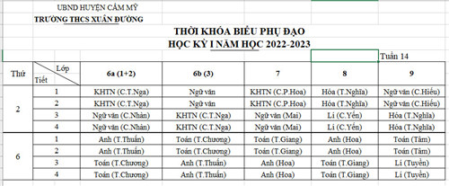 THỜI KHÓA BIỂU PHỤ ĐẠO TUẦN 13 -14
