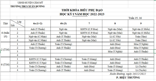 THỜI KHÓA BIỂU PHỤ ĐẠO TUẦN 15-16