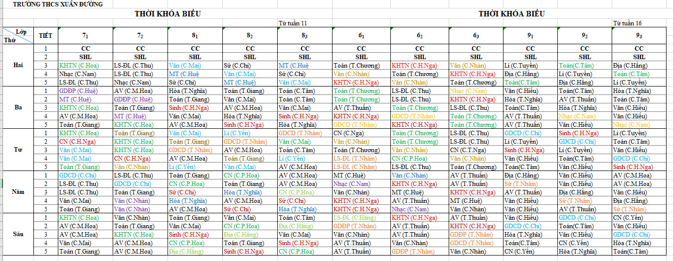 THỜI KHÓA BIỂU TUẦN 11
