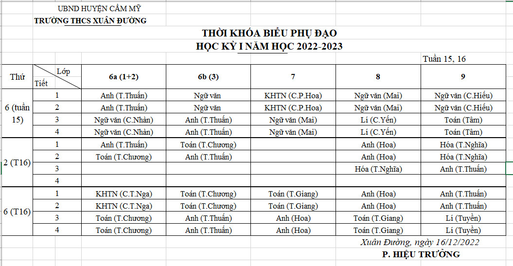 THỜI KHÓA BIỂU PHỤ ĐẠO TUẦN 15-16